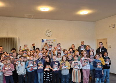 Mit großer Freude nahmen die Kinder die Lektüre „Geheimnisvolle Spuren“ entgegen. Ziel der Aktion ist es, die Freude am Lesen zu fördern und den Kindern neue Leseanreize zu bieten. Die Bücher dürfen selbstverständlich behalten werden.